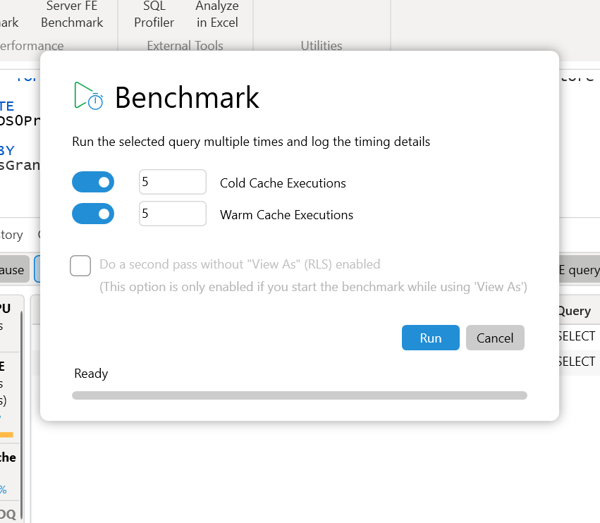 We would recommend to first have a quick read on the beginner's guide before continuing here. In this article we will focus on running benchmark on your queries, formatting queries both short line and long line, defining dependent measures and lastly and one of my favourite importing performance data in DAX Studio.