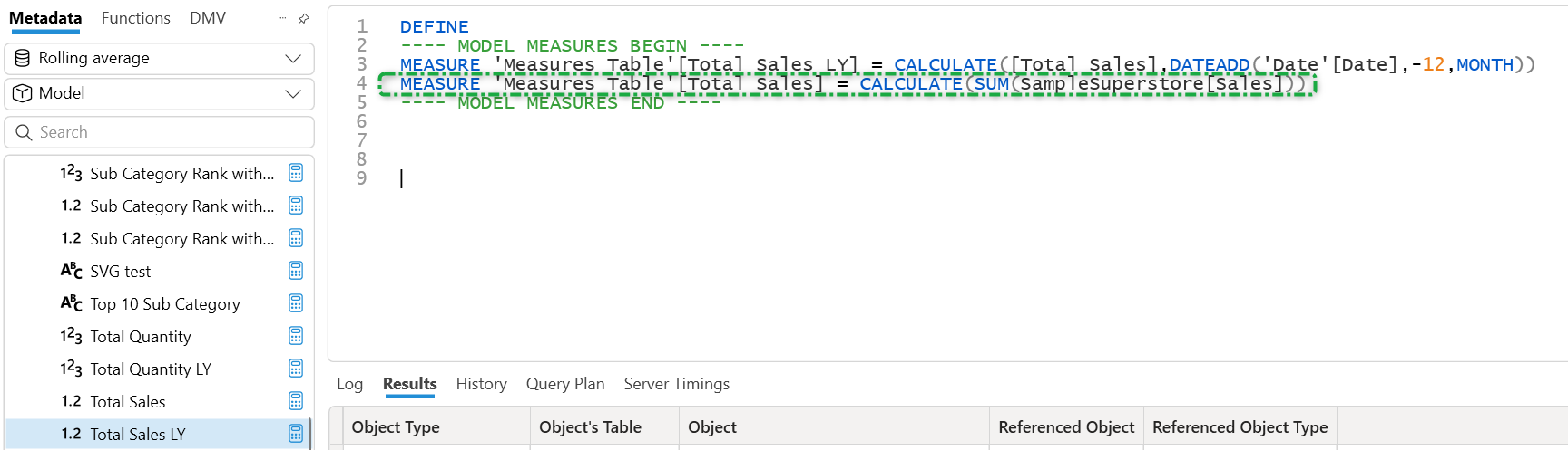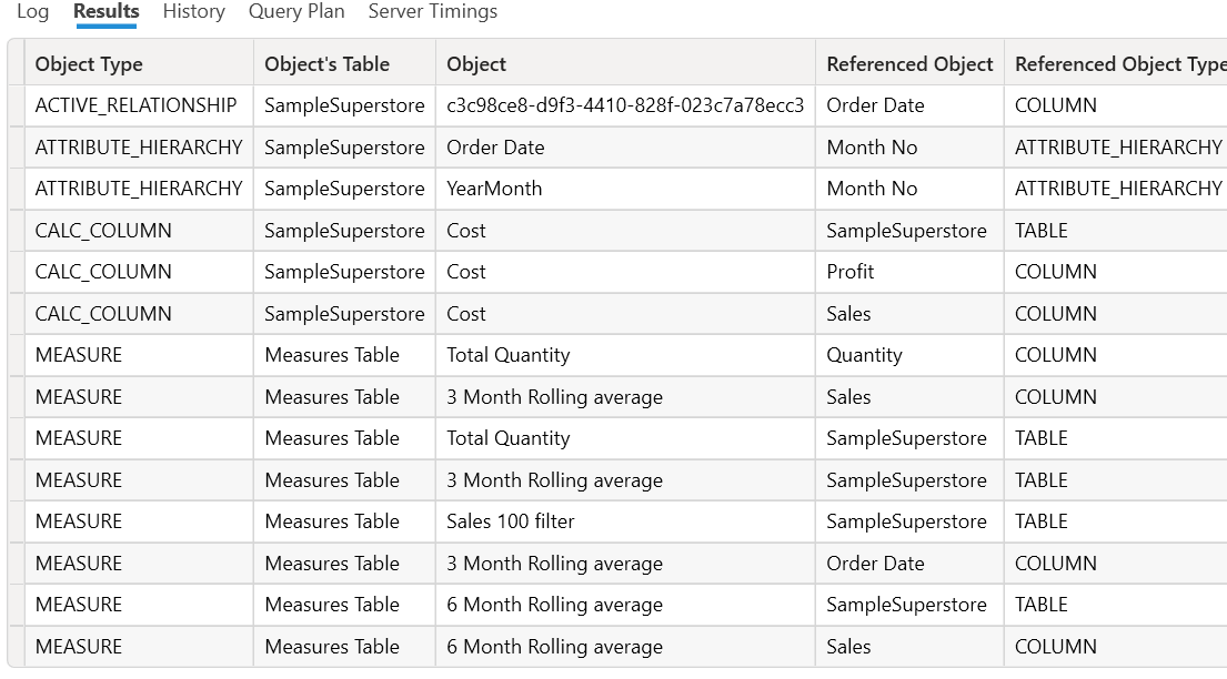 Since I am using the Total Sales measure to calculate my Total Sales LY it is reflected in this. What if I want to check where a particular table is taken as a reference? It is possible let's check on the fact table that is Sample Superstore just right click on it and select show objects that reference table.