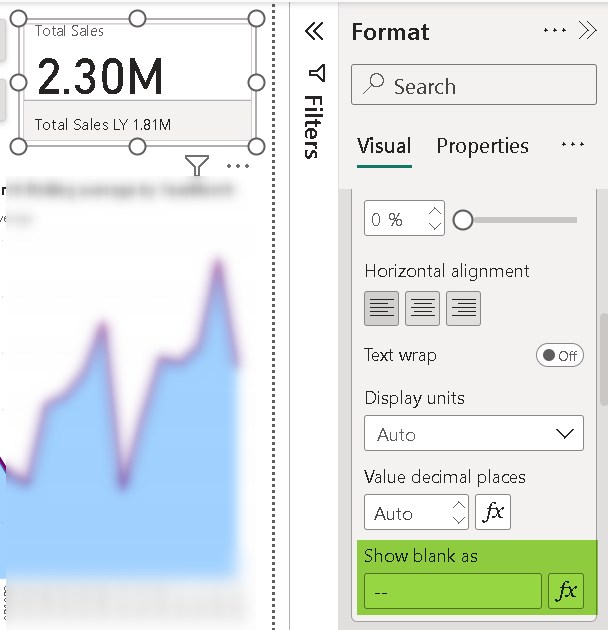 What if I am using the old KPI cards? How to deal with blanks in such scenarios? It can be done in the DAX itself by providing IF(ISBLANK(Measure),0, Measure).
