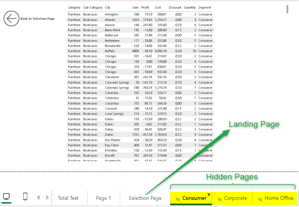 Hit OK and you will see on the landing page we only have one segment selected on the button slicer and to access the data the blank button needs to be clicked. When you click the button it will take you to one of the hidden pages in this case it is Consumer. Isn't it amazing???