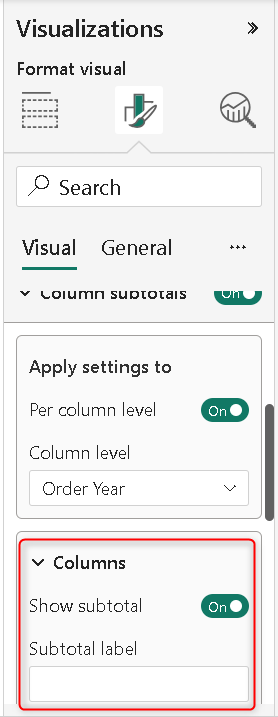 Pro tip: Using all these measures is fun but beware that by default matrix will only show totals as the label for the column and row subtotals. To change it select the matrix and go to the Column Subtotal and Row Subtotal to change it. Also, if you do not want to provide a label just click on the Subtotal label and provide a space.